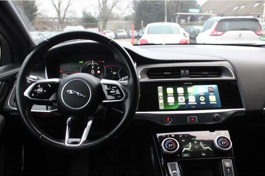 Hightech elektronica en emissievrij rijden komen samen in de Jaguar I-Pace. Deze auto biedt een onvergelijkbare rijbeleving dankzij de volledig elektrische aandrijflijn. U wordt actief onderdeel van de energietransitie met de elektromotor. Wel eens luchtvering ervaren? Deze auto biedt elke keer een rimpelloze rit. De auto is voorzien van een mooie en comfortabele lederen bekleding. Chauffeur en bijrijder zitten stabiel in de scherpe bochten door de met leder beklede sportstoelen. De elektrische achterklep opent met een druk op de knop, zodat u gemakkelijk toegang heeft tot de bagageruimte. Deze Jaguar I-Pace is niet zuinig met comfort. Wat dacht u van een verwarmde achterbank? Ook 20 inch lichtmetalen velgen, instelbaar onderstel, LED-achterlichten, snelheidsbegrenzer, elektrisch bedienbare en verwarmde buitenspiegels, LED-dagrijverlichting en in delen neerklapbare achterbank horen tot de voorzieningen op deze auto.