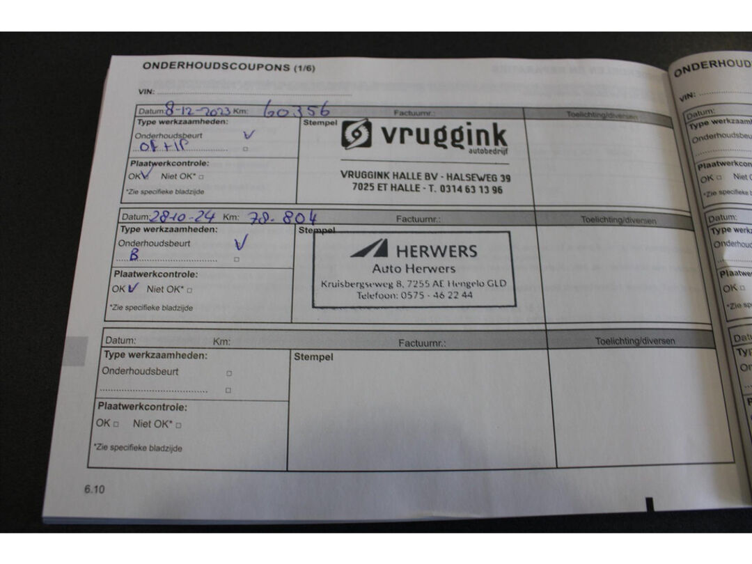 - Grote onderhoudsbeurt; slijtage-onderdelen worden indien nodig vervangen